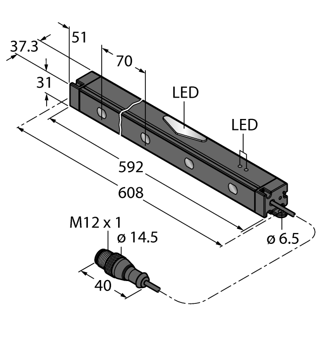 608 x 31 x 37.3 mm