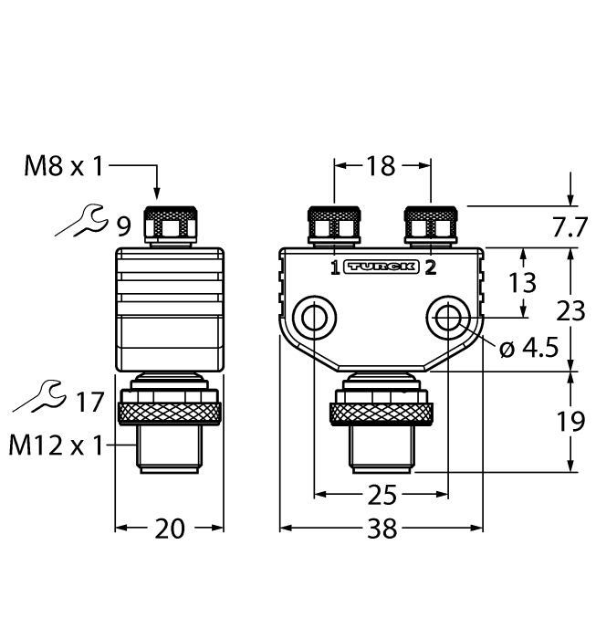 2 x złącze żeńskie, M8 × 1